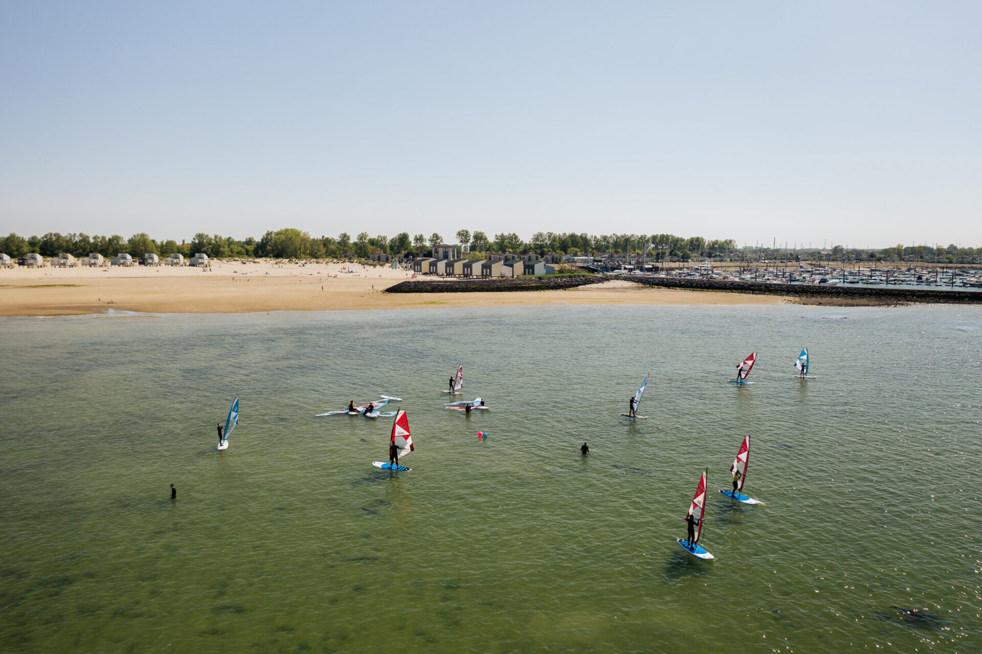 Wir glauben, dass Sie Windsurfen am Beste im Wasser lernen kann und daher die Anweisungen auf der Seite auf ein Minimum beschränken und fast sofort ins Wasser gehen! Wir unterrichten in relativ kleinen Gruppen und geben jedem die nötige Aufmerksamkeit. All dies und die Verwendung des richtigen Materials sorgen dafür, dass das Erfolgserlebnis unglaublich hoch ist!